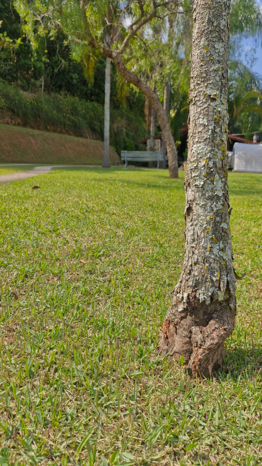 Particularmente, percebo que este salgueiro-chorão vem sofrendo muito sempre que roçam o gramado. Olhando com calma, percebi essas feridas cicatrizadas em sua base.